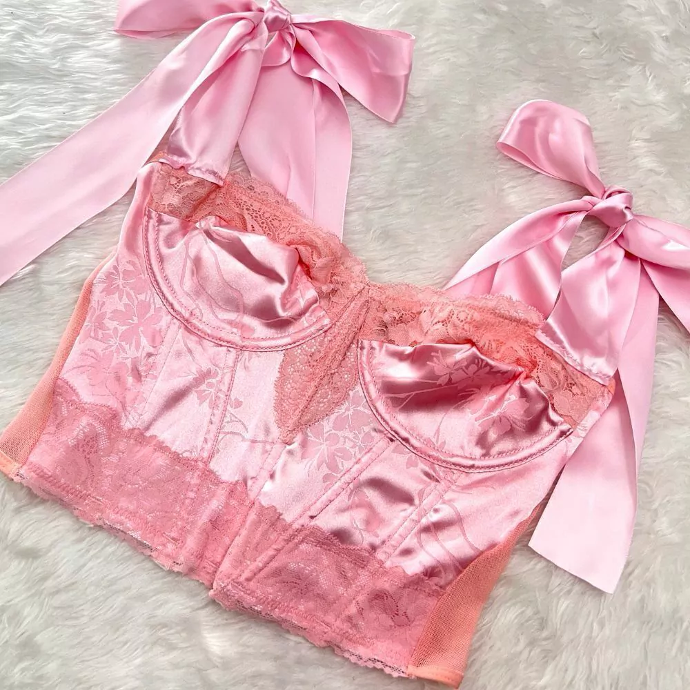 Hermoso bustier de la línea premium. Elaborado en suave saten con encaje y finos siguras. El bustier tiene varilla en el busto para un mejor soporte; cuenta con tirantes de listón ajustables. En la parte trasera tiene 3 tiras de broches para un mejor ajuste.